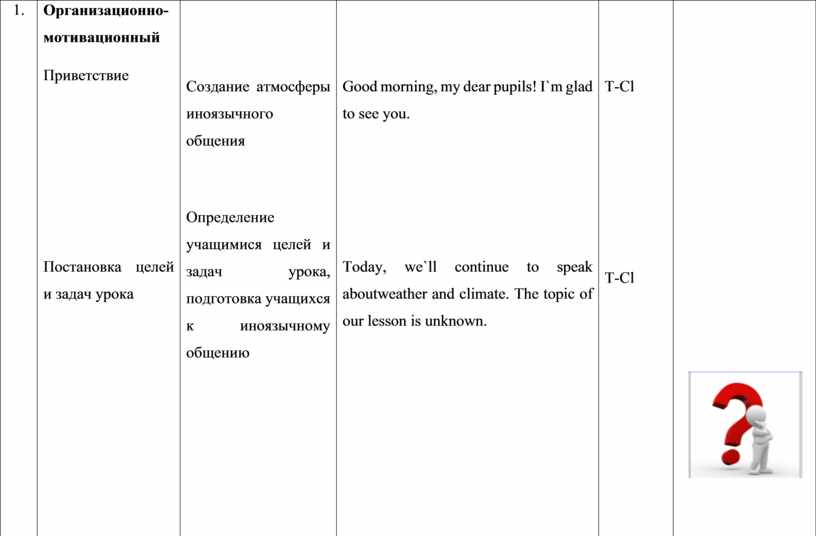 Определение учащимися целей и задач урока, подготовка учащихся к иноязычному общению |