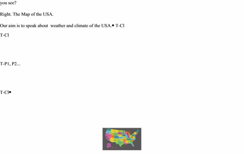Now we have two groups – Weather and Climate. Ok, look at the board. The map of what country do you see? Right. The Map of the USA. Our aim is to speak about weather and climate of the USA. |