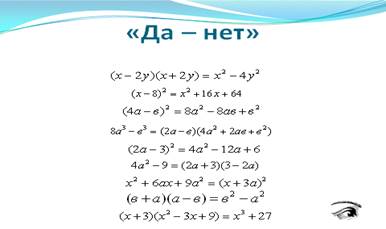 УМЕЮ: мы умеем выполнять преобразование выражений при помощи формул сокращённого умножения