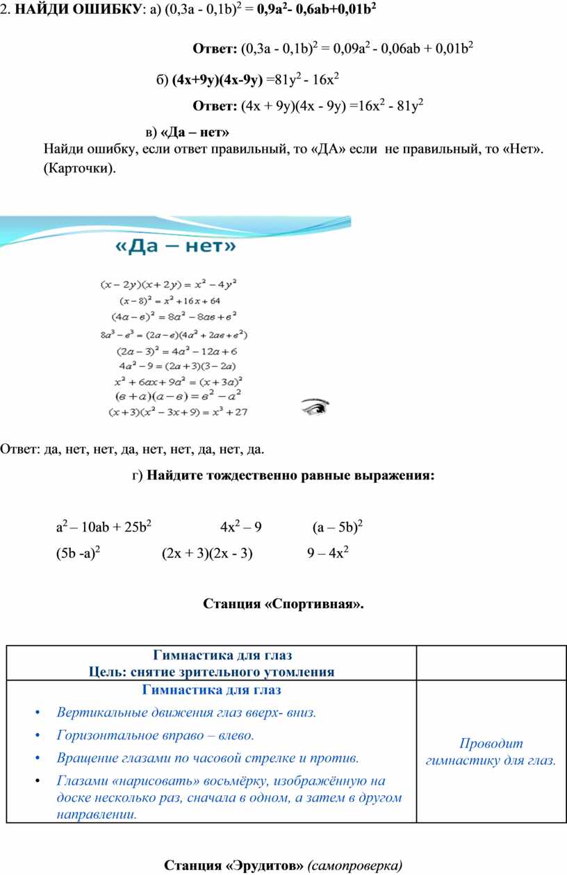 2. НАЙДИ ОШИБКУ: а) (0,3а - 0,1b)2 = 0,9a2- 0,6аb+0,01b2