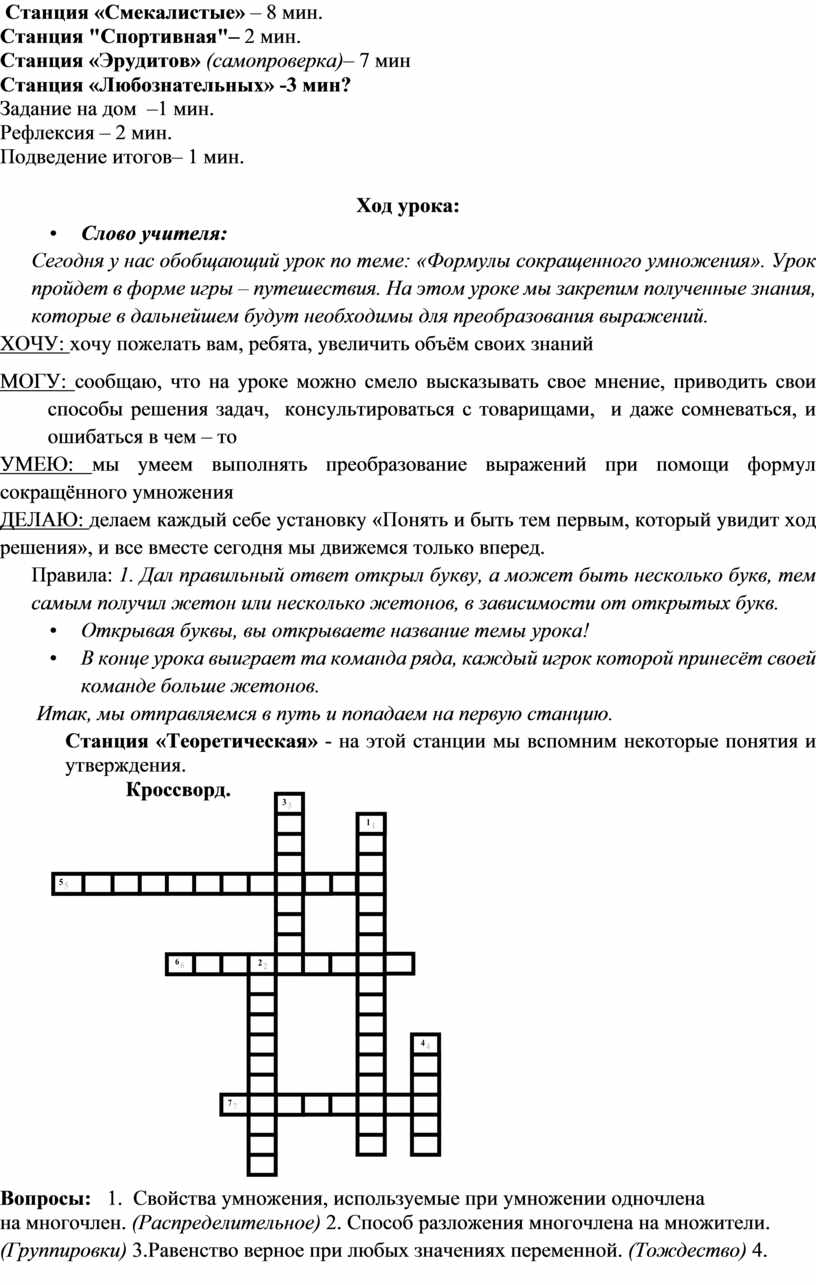• Станция «Эрудитов» (самопроверка)– 7 мин