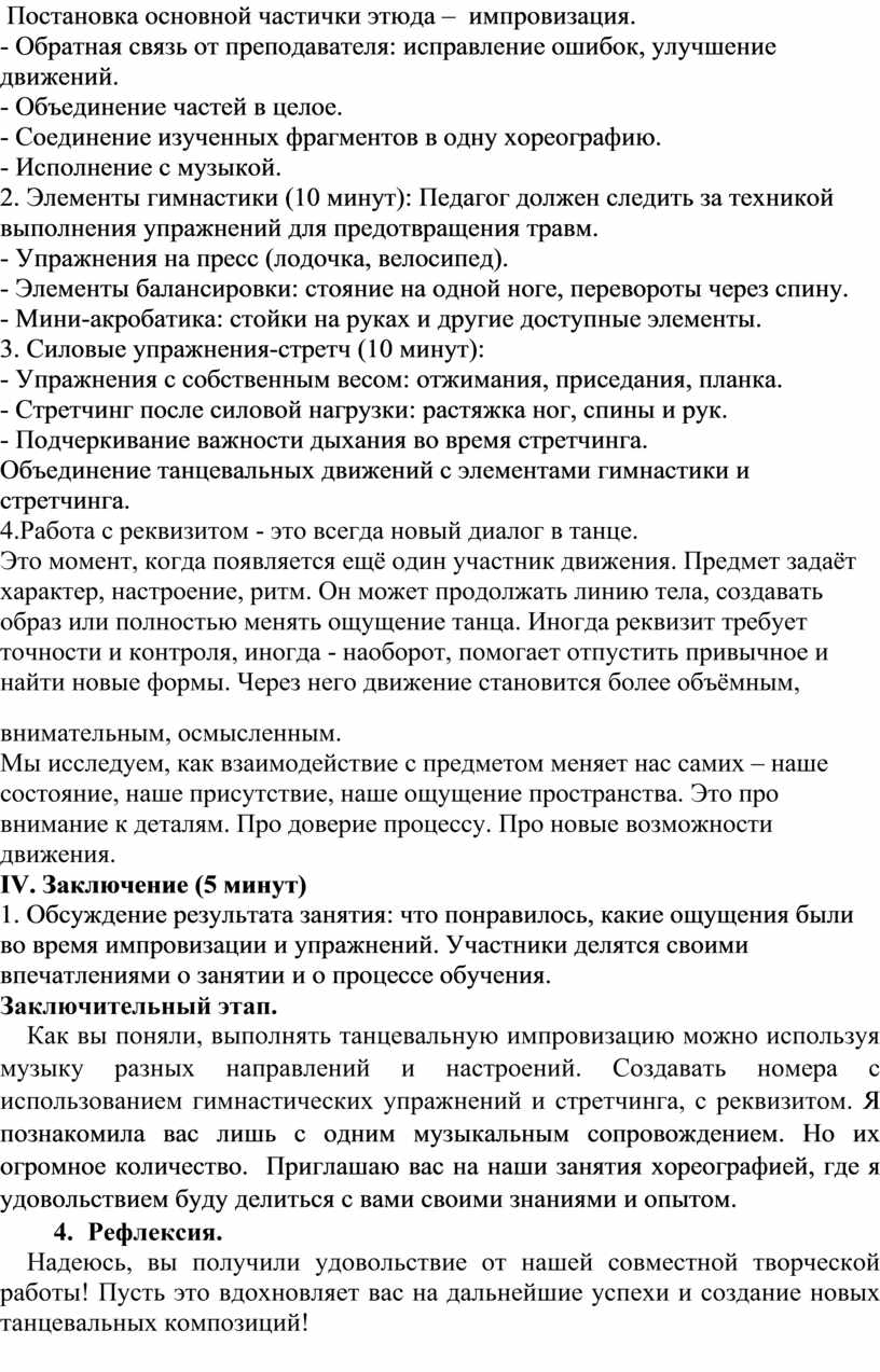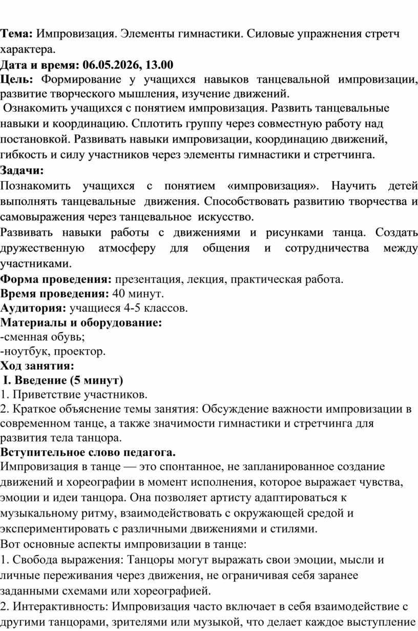 "Импровизация, элементы гимнастики и силовые упражнения стретч характера".