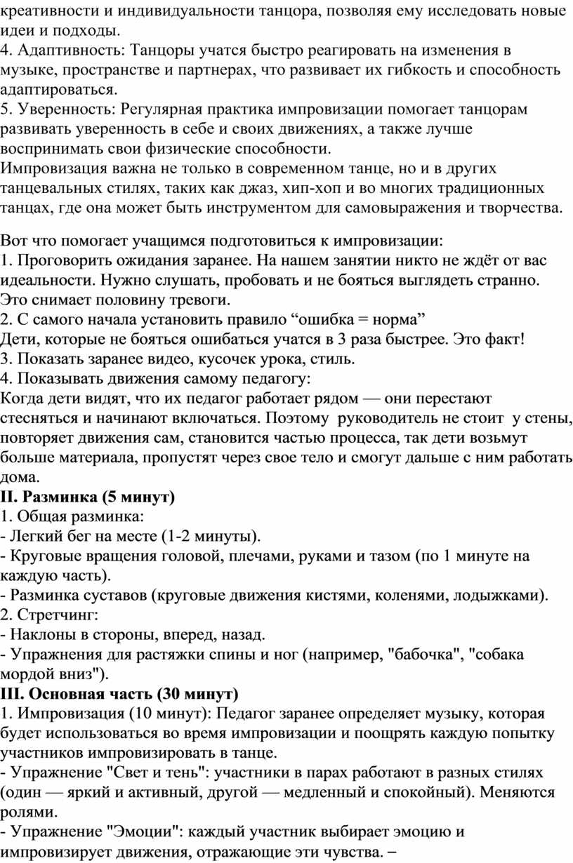 1. Импровизация (10 минут): Педагог заранее определяет музыку, которая будет