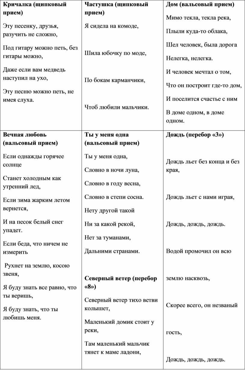 Трехзвучный прием (перебор «3»), аккомпанемент песни «Дождь» |