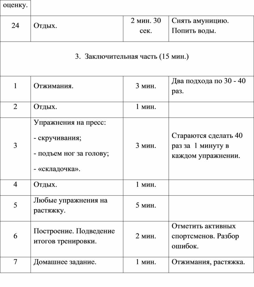 тренировочного занятия