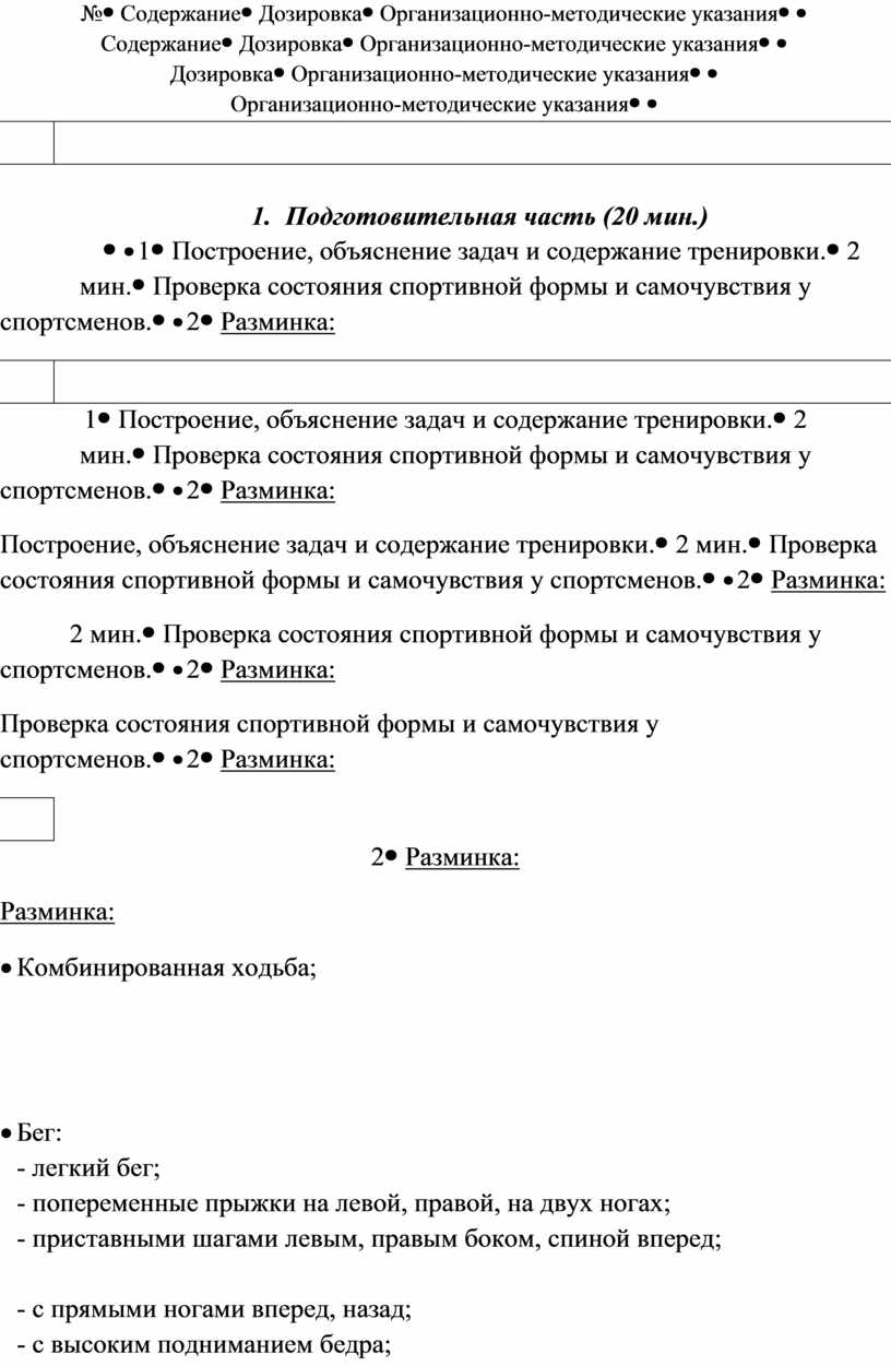 1. Подготовительная часть (20 мин.)