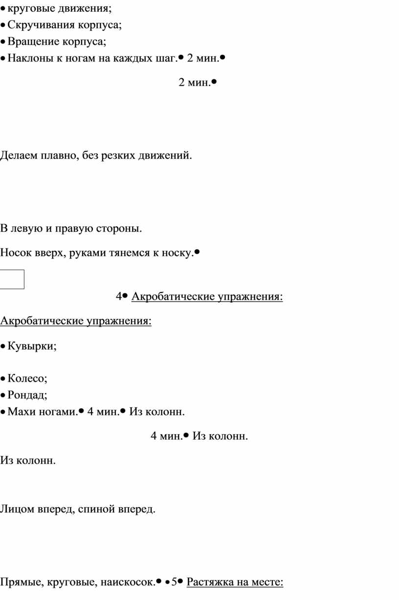 Акробатические упражнения: · Кувырки;