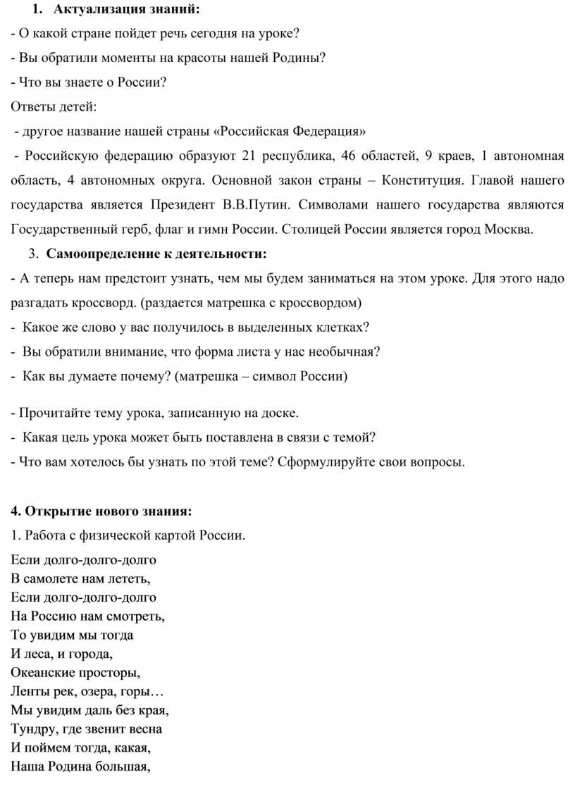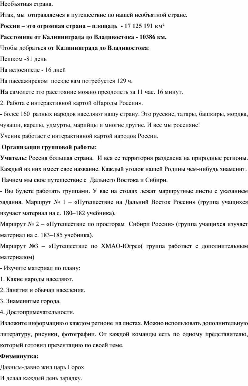 Учитель: Россия большая страна. И вся ее территория разделена на природные регионы. Каждый из них имеет свое название. Каждый уголок нашей Родины чем-нибудь знаменит.