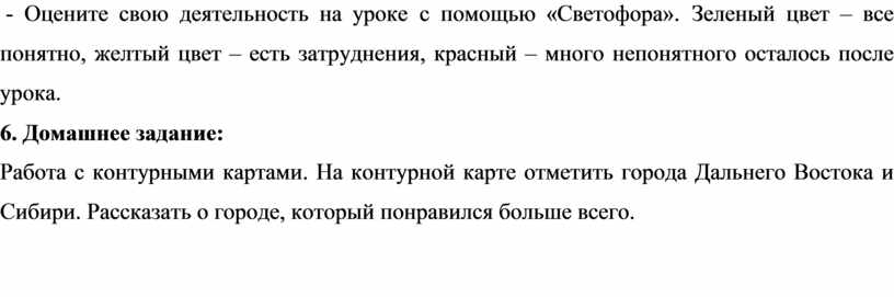Работа с контурными картами. На контурной карте отметить города Дальнего Востока и Сибири. Рассказать о городе, который понравился больше всего.