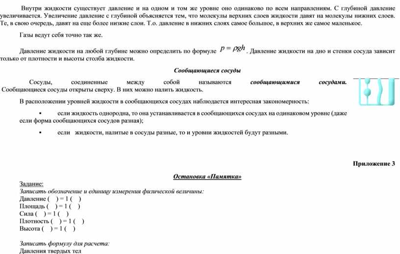 на тему «Давление твёрдых тел, жидкостей и газов»
