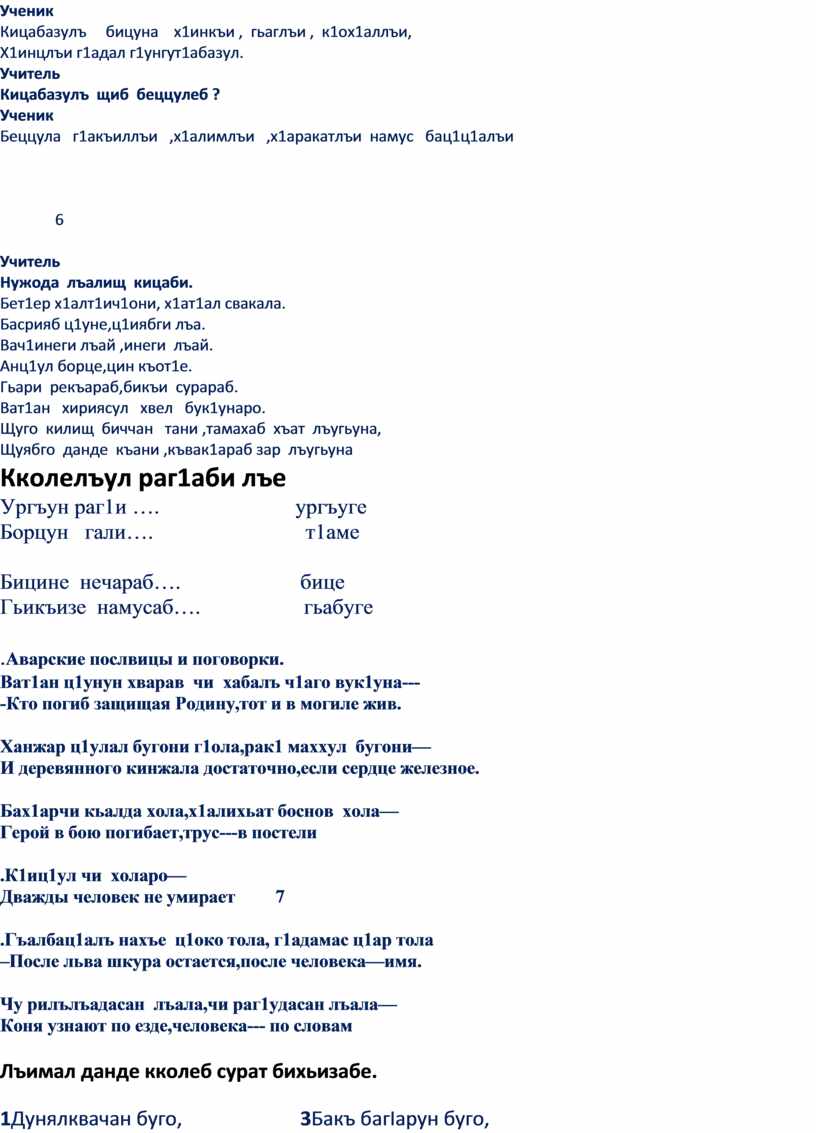 1. Рорч1ами лъимал ! Нилъер жакъасеб дарсил тема: «Халкъиял куч1дул бицанк1аби, кицаби»
