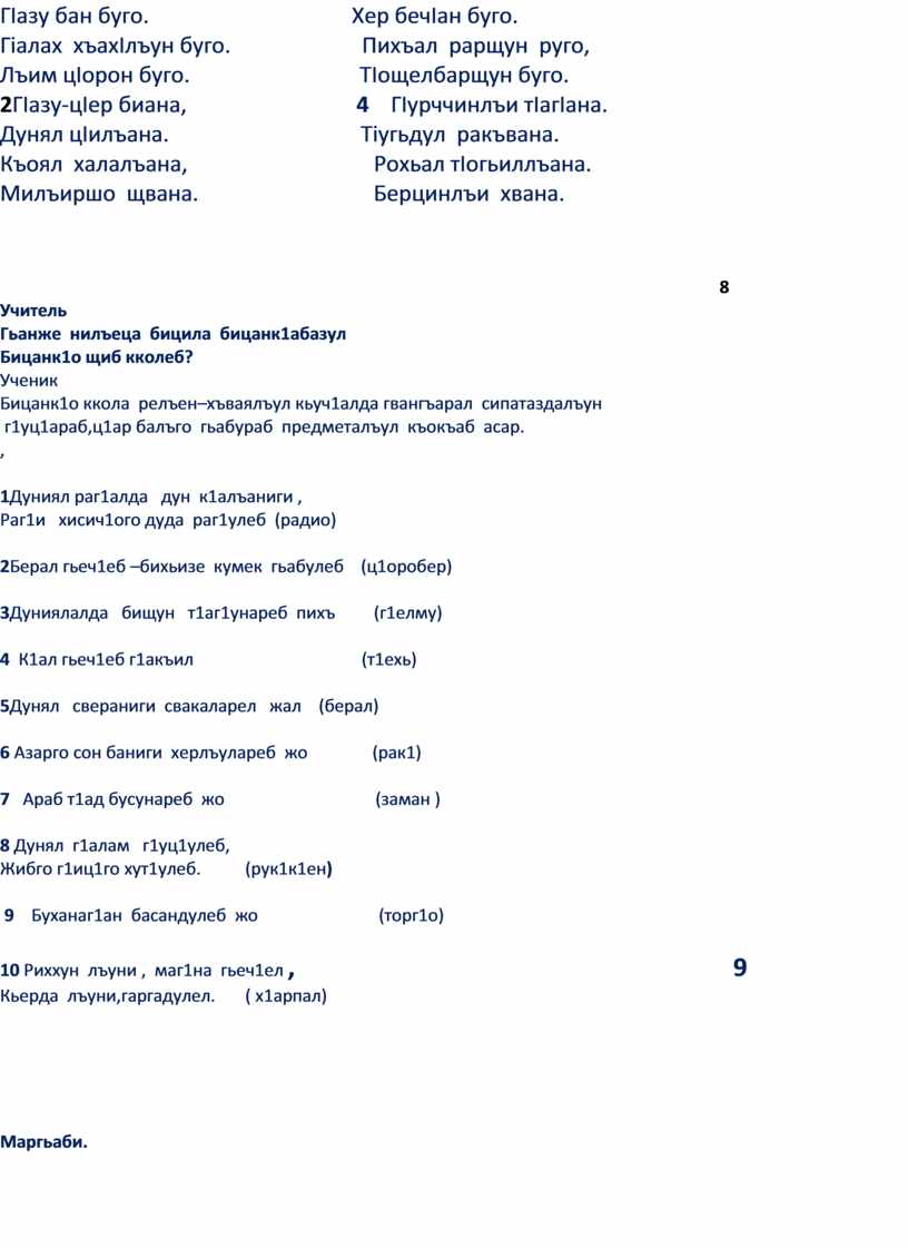 10 Риххун лъуни , маг1на гьеч1ел , 9