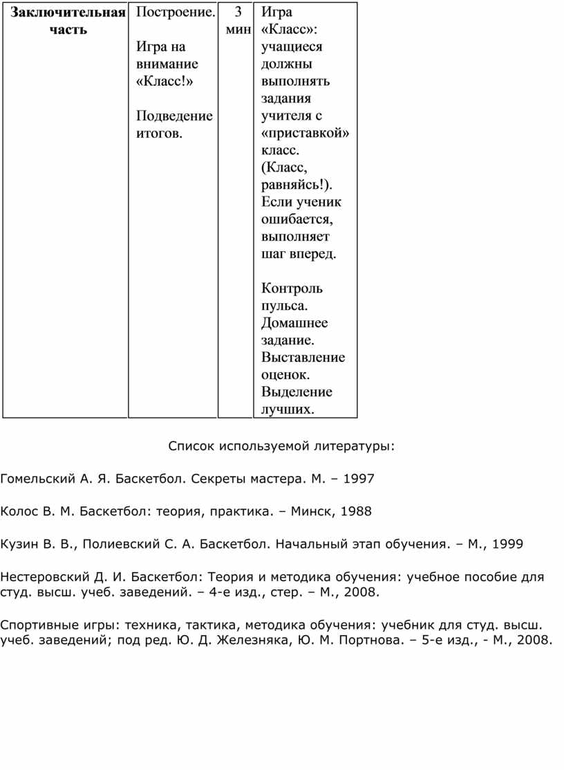 Нестеровский Д. И. Баскетбол: Теория и методика обучения: учебное пособие для студ. высш. учеб. заведений. – 4-е изд., стер. – М., 2008.