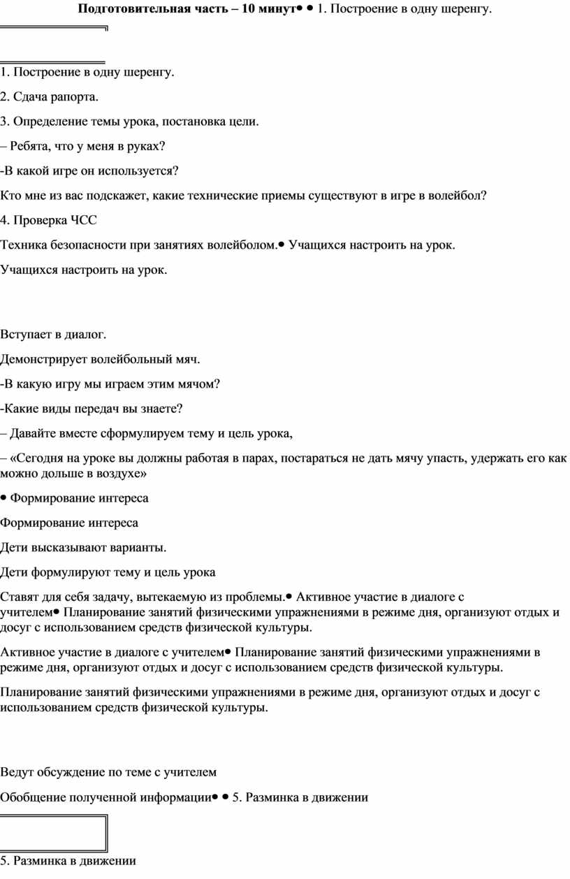 Подготовительная часть – 10 минут