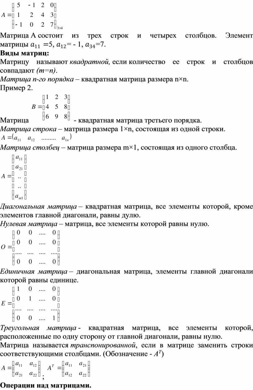 · основные виды матриц;