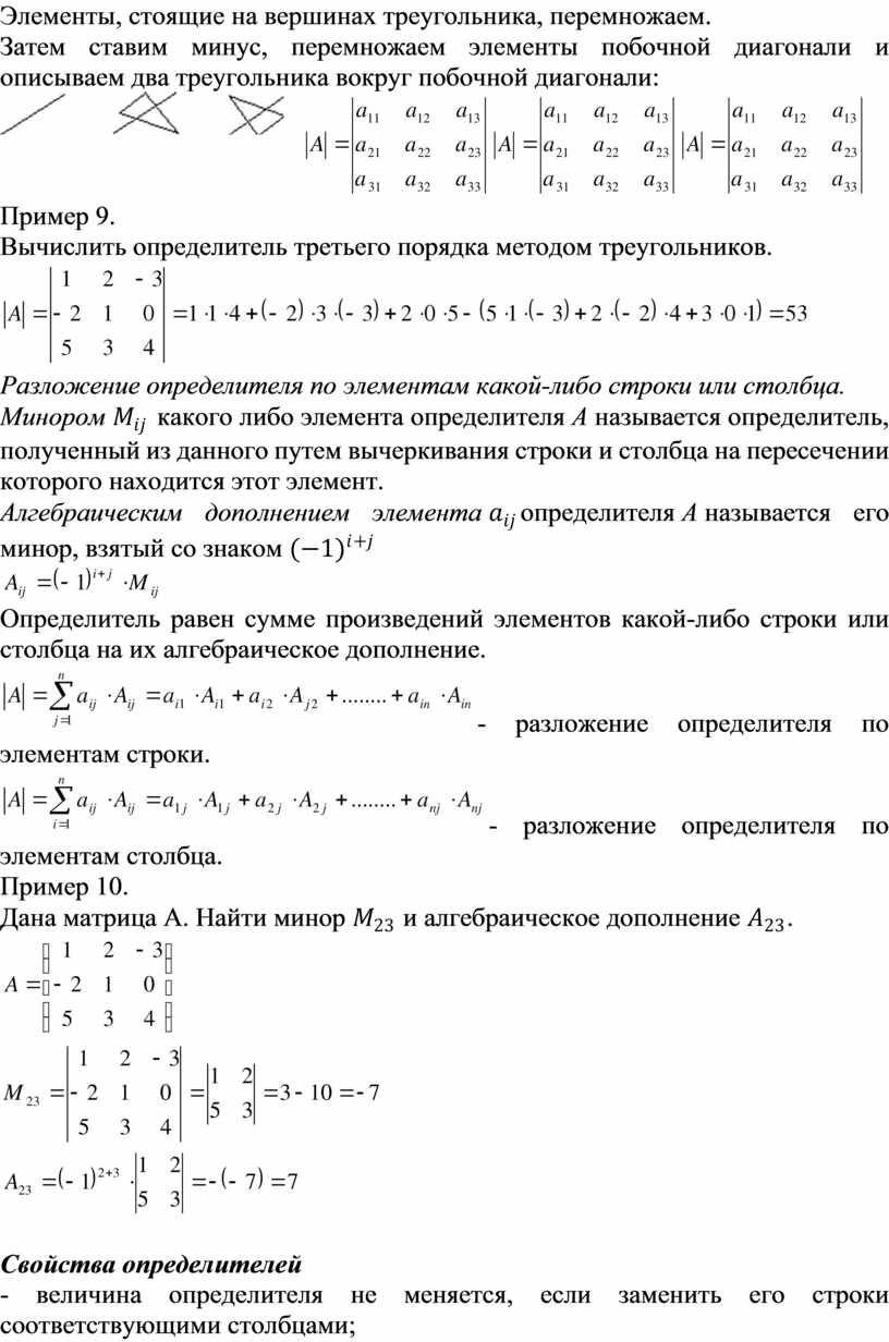 Свойства определителей
