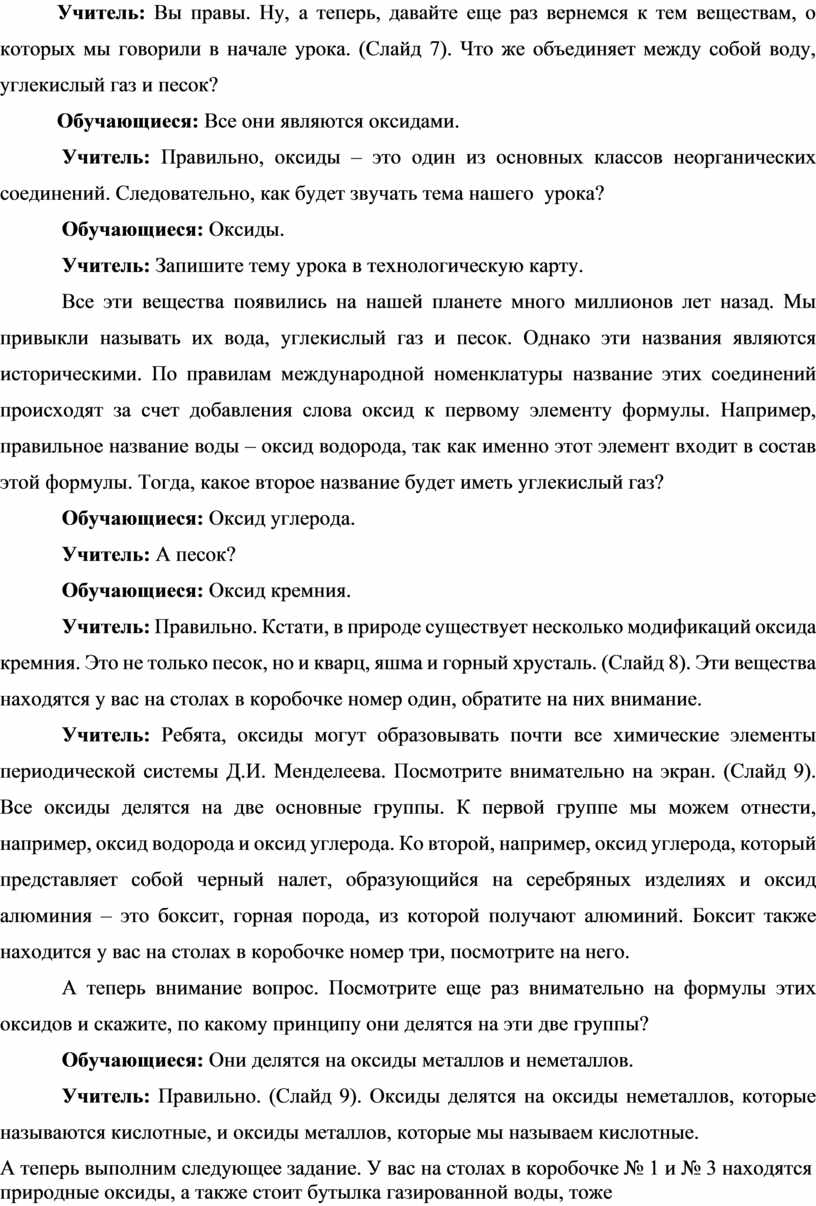 Учитель: Правильно, оксиды – это один из основных классов неорганических соединений. Следовательно, как будет звучать тема нашего урока?