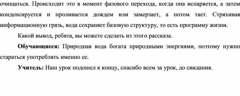 Обучающиеся: Природная вода богата природными энергиями, поэтому нужно стараться употреблять именно ее.