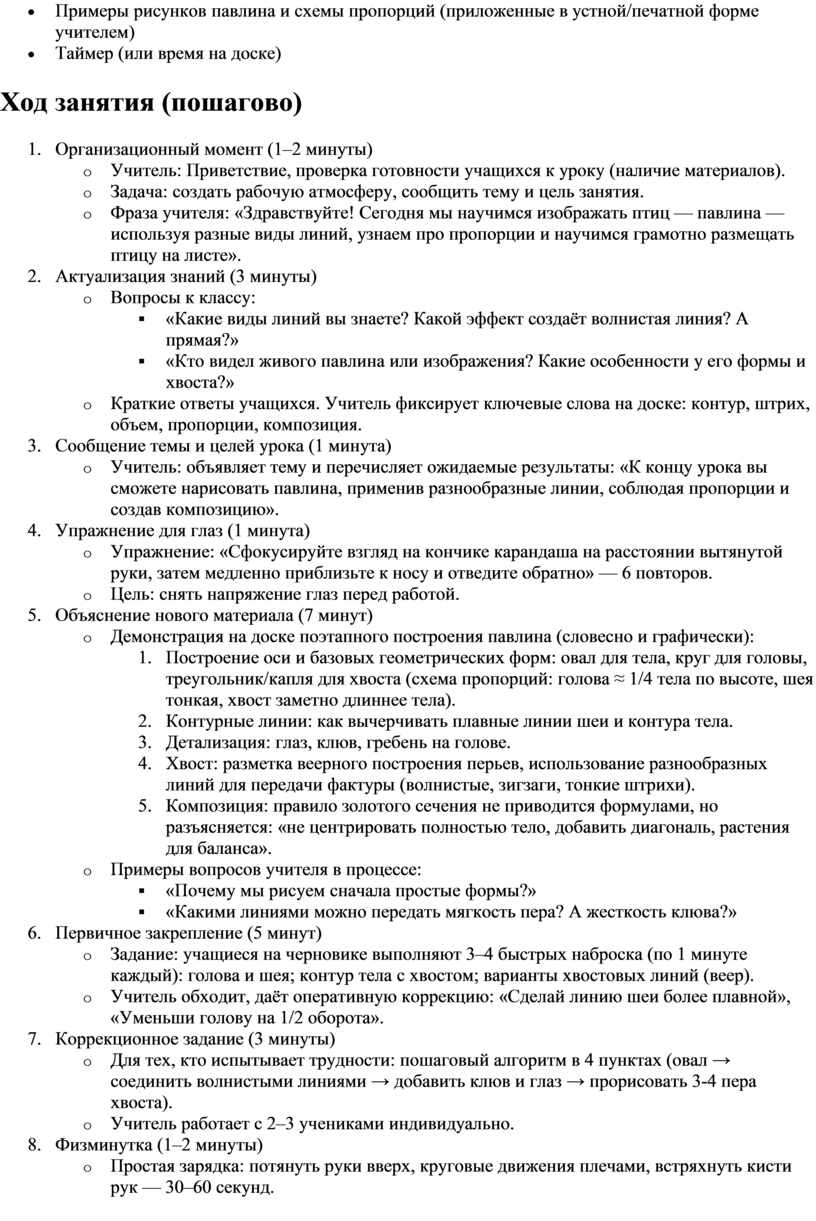 - Примеры рисунков павлина и схемы пропорций (приложенные в