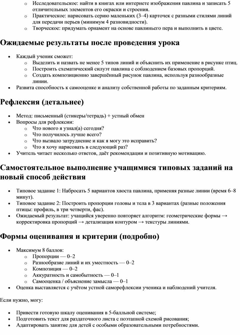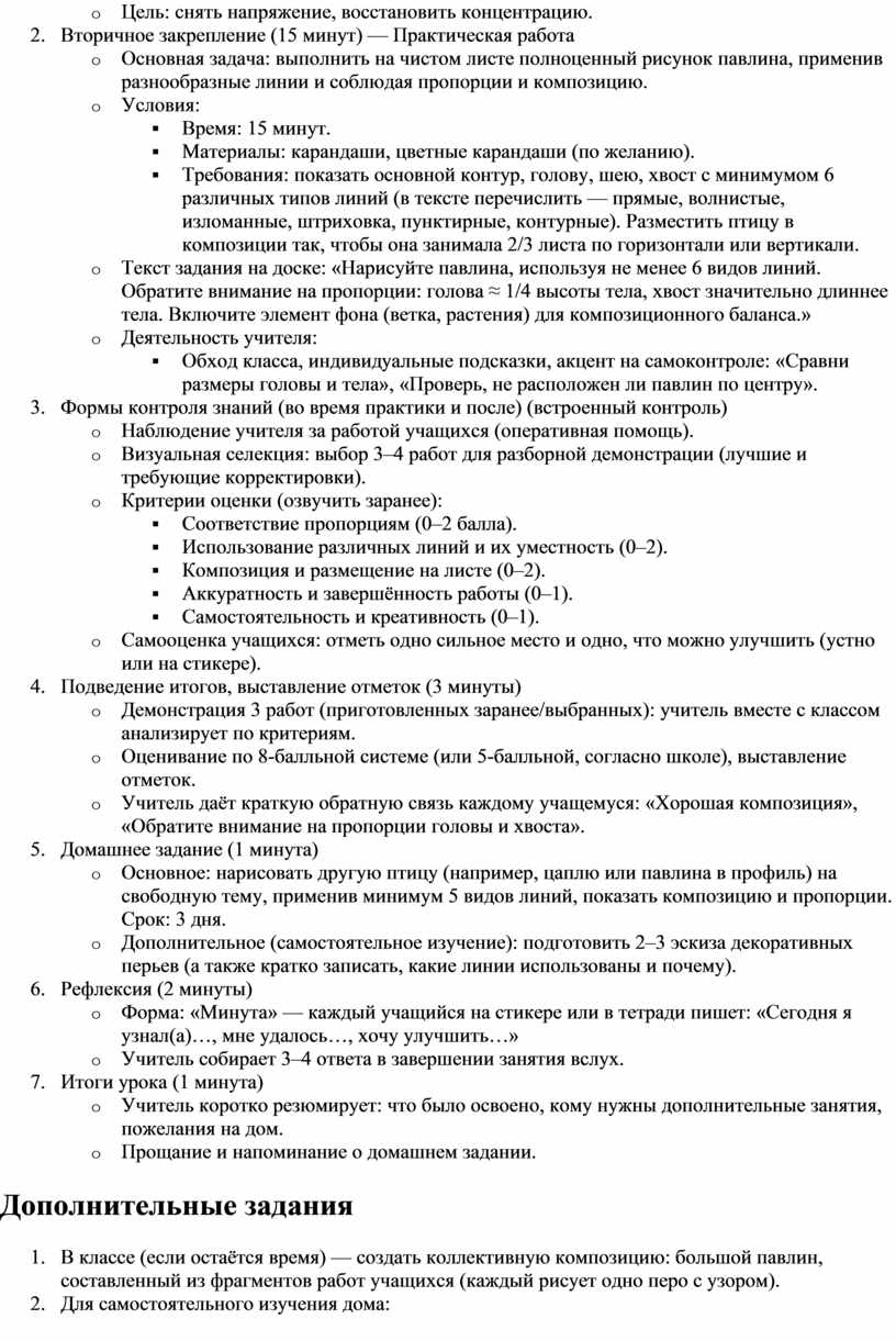 изображения птиц (павлина) с использованием разнообразных линий, освоение основ