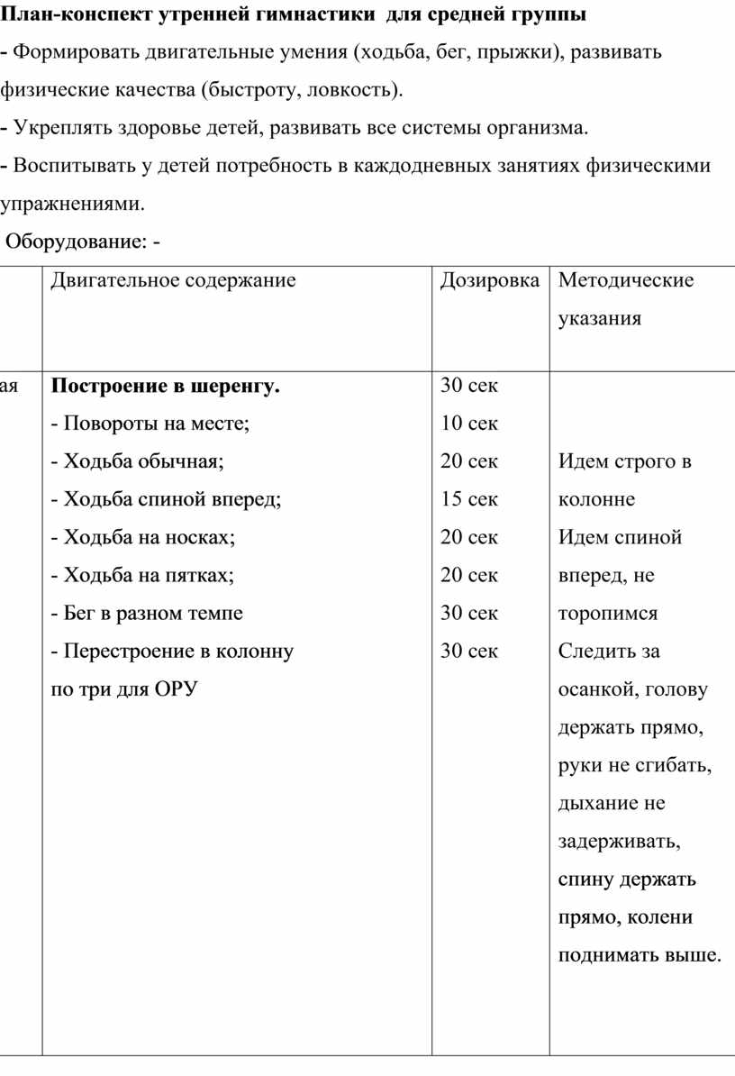 План-конспект утренней гимнастики для средней группы