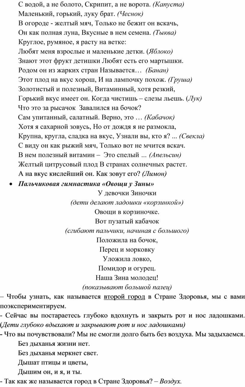 - Так как же называется город в Стране Здоровья? – Воздух.
