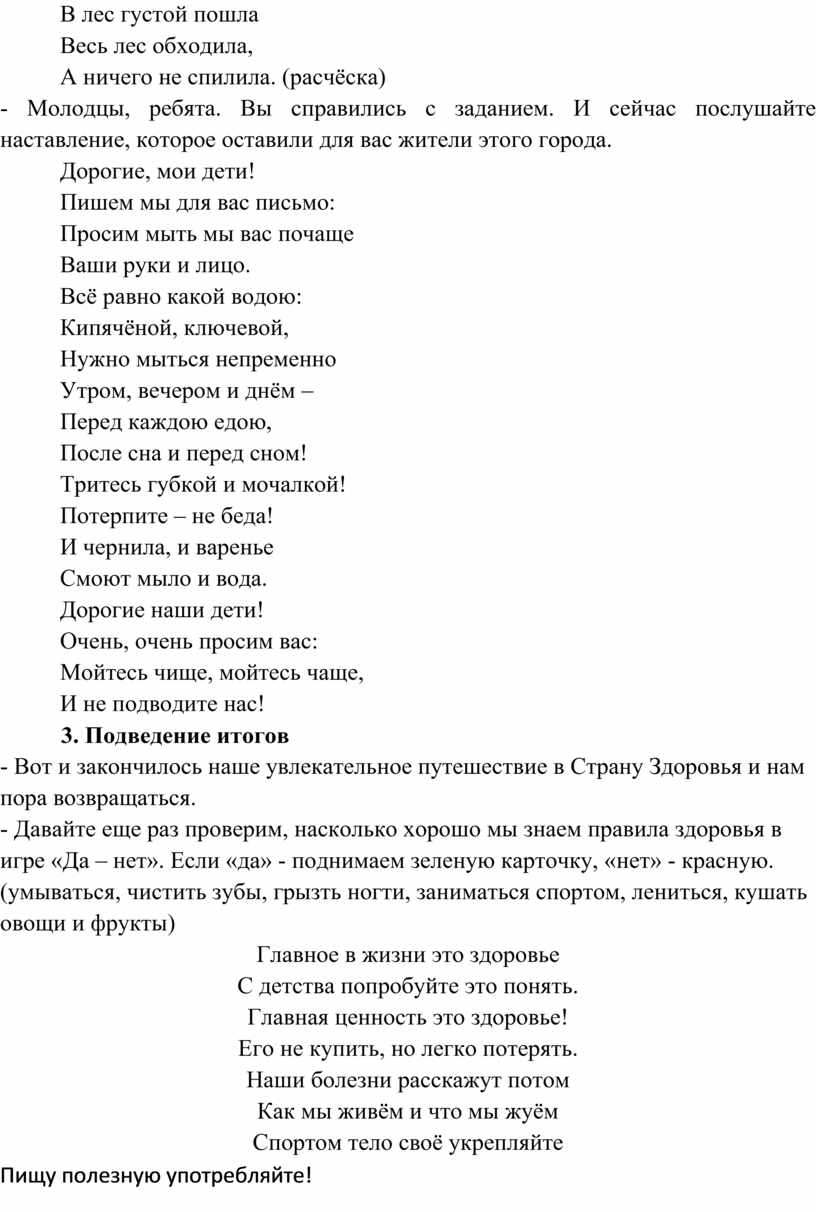 - Вот и закончилось наше увлекательное путешествие в Страну Здоровья и нам пора возвращаться.