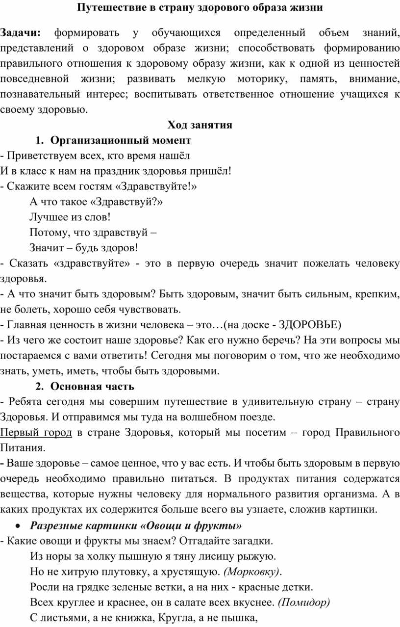Путешествие в страну здорового образа жизни