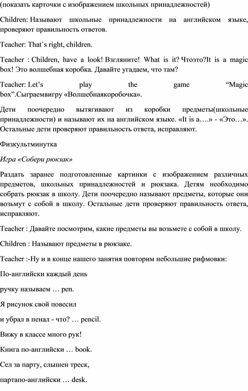 Teacher : Давайте посмотрим, какие предметы вы возьмете с собой в школу.