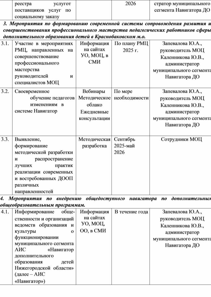 3. Мероприятия по формированию современной системы сопровождения развития и совершенствования профессионального мастерства педагогических работников сферы дополнительного образования детей в Краснобаковском м.о. |