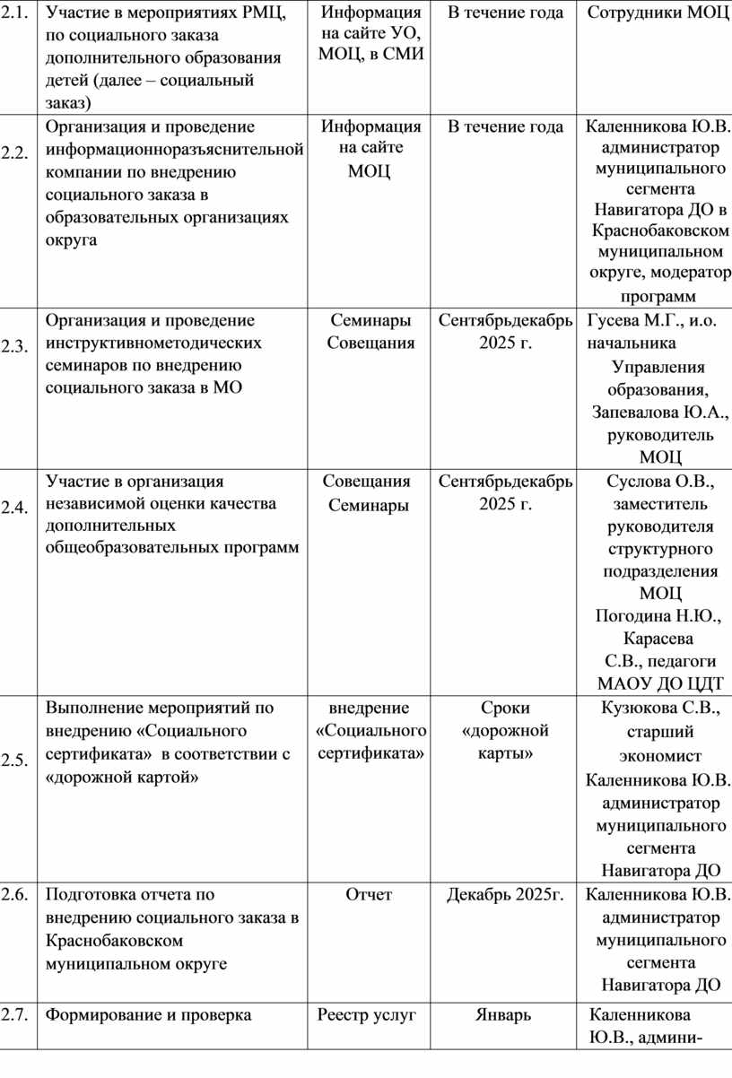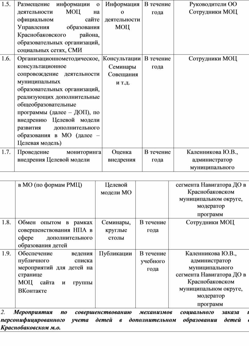 2. Мероприятия по совершенствованию механизмов социального заказа и персонифицированного учета детей в дополнительном образовании детей в Краснобаковском м.о. |