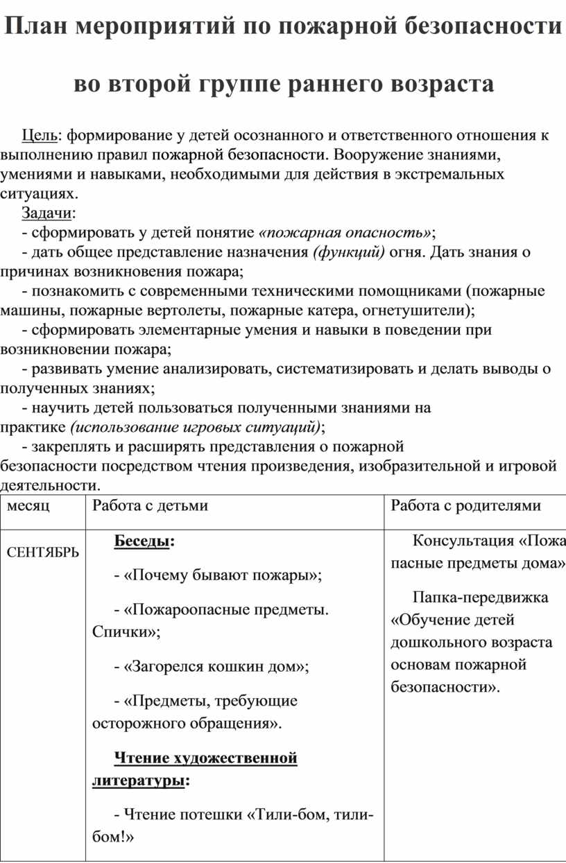 - родительское собрание на тему «Безопасность детей младшего дошкольного возраста». Папка – передвижка «Огонь - друг, огонь -враг». Консультация «Расскажите детям о пожарной безопасности».