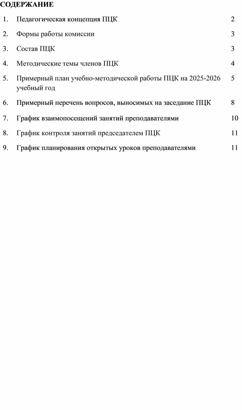 6. Примерный перечень вопросов, выносимых на заседание ПЦК