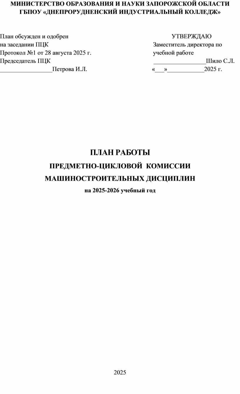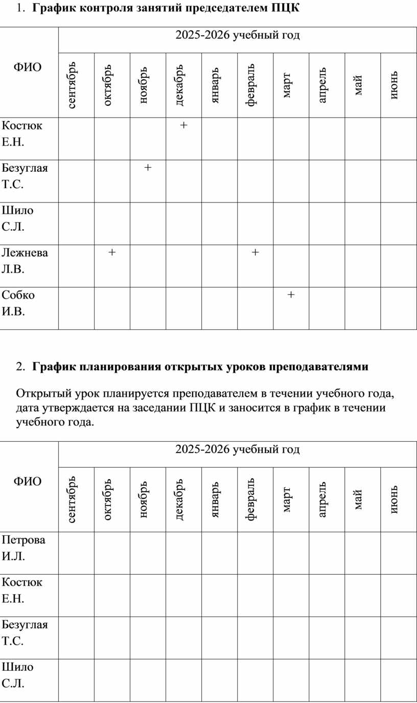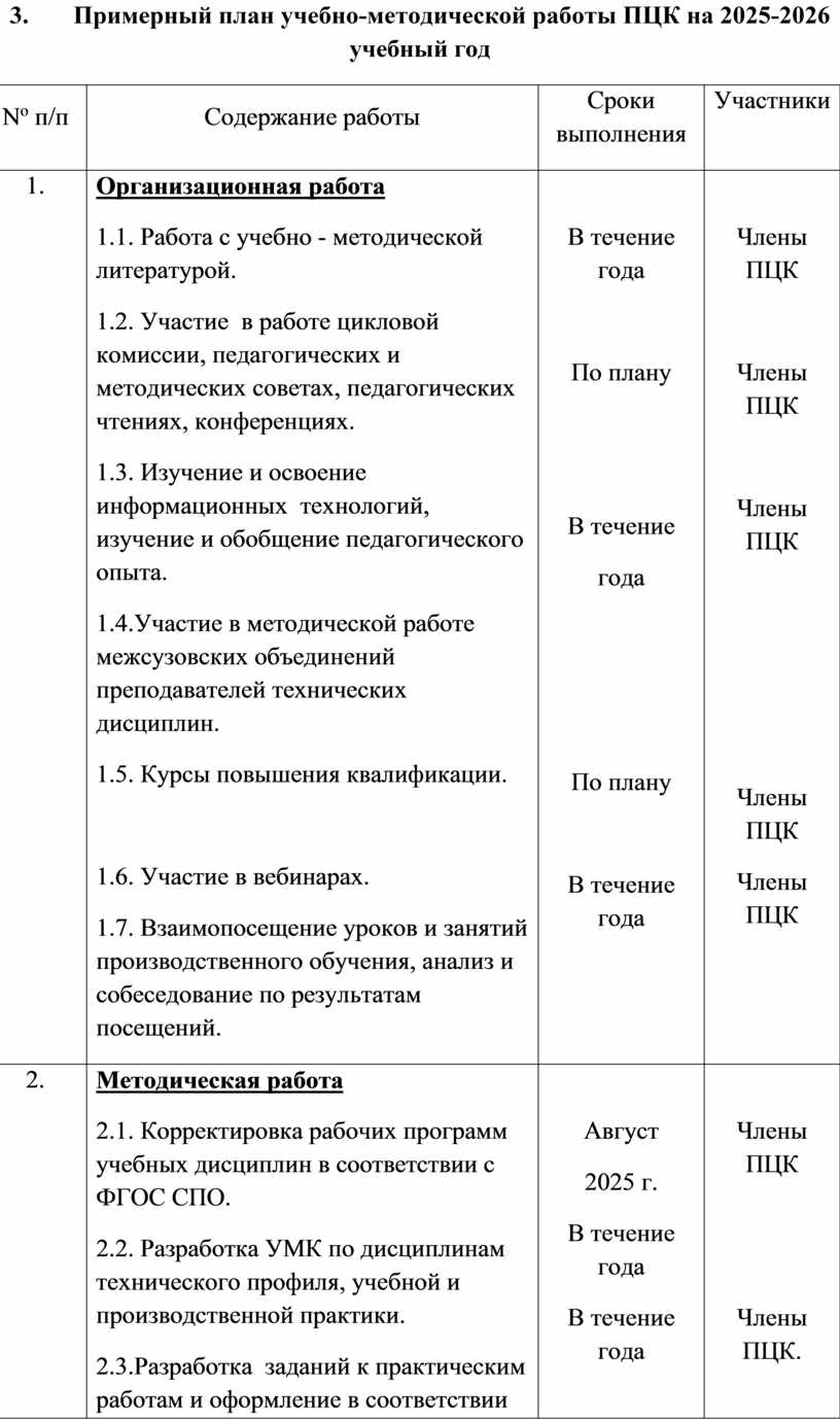 Примерный план учебно-методической работы ПЦК на 2025-2026 учебный год |