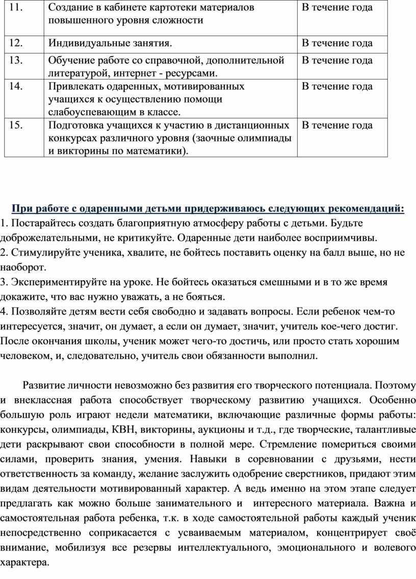 При работе с одаренными детьми придерживаюсь следующих рекомендаций: