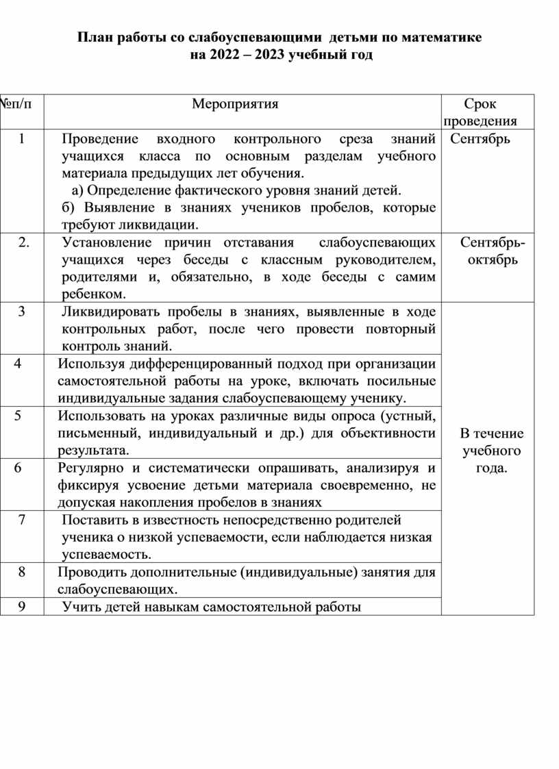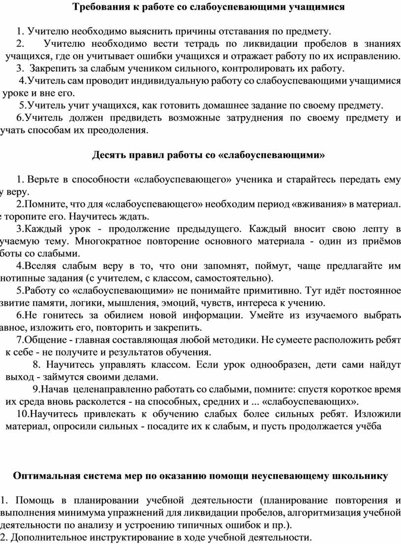 Оптимальная система мер по оказанию помощи неуспевающему школьнику