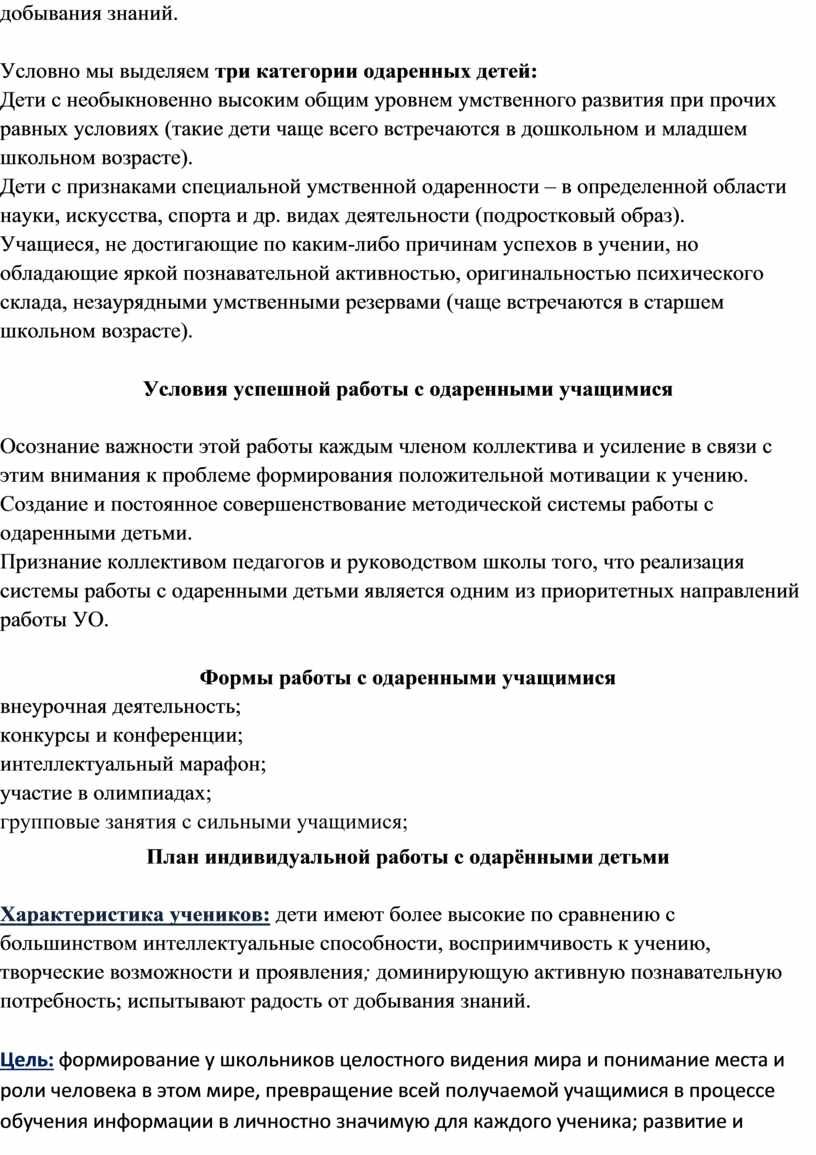 - предусматривать степень и метод самораскрытия одарённых обучающихся, умственное, эмоциональное, социальное развитие и индивидуальное различие обучающихся;