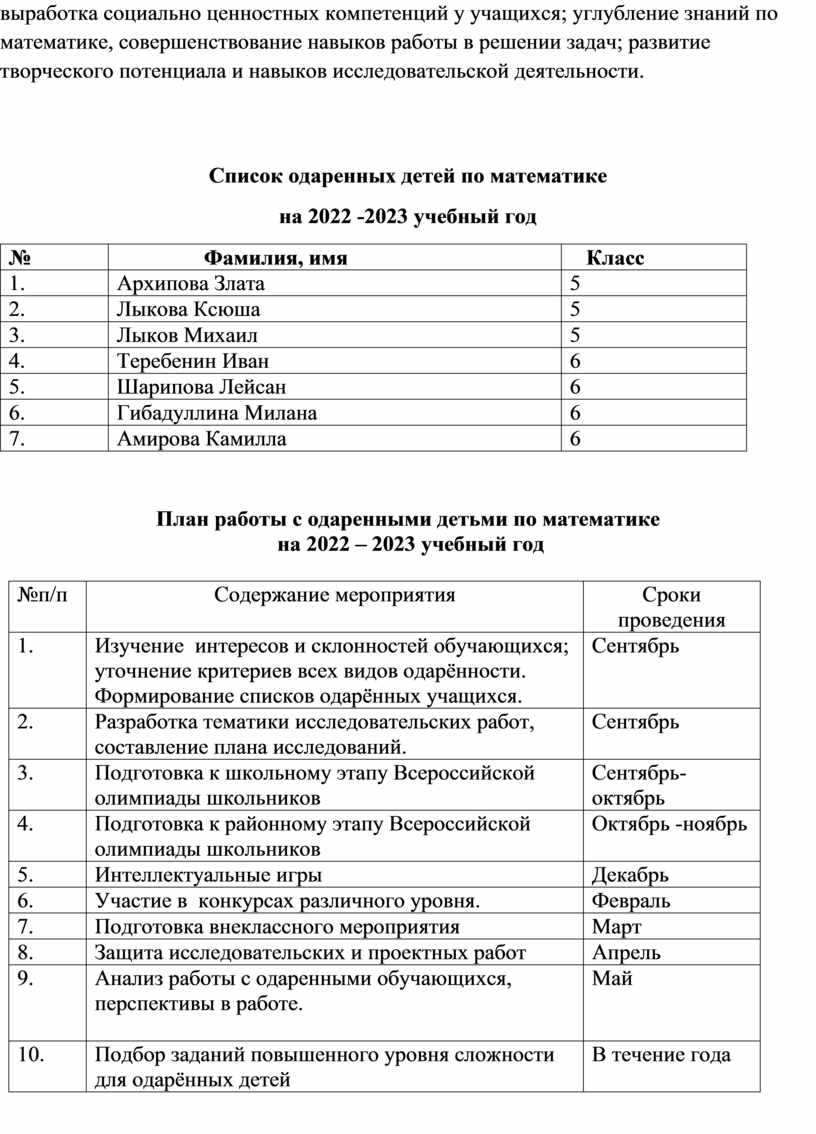 уделять особое внимание психолого – педагогической поддержке одарённых (мотивированных детей), ранней диагностики интеллектуальной одарённости, усиление научно – методического сопровождения по данному направлению; исходить из принципа: каждый ребёнок от природы одарён по своему.