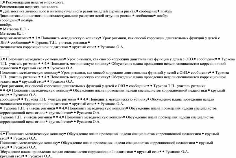 Обсуждение плана проведения недели специалистов коррекционной педагогики |