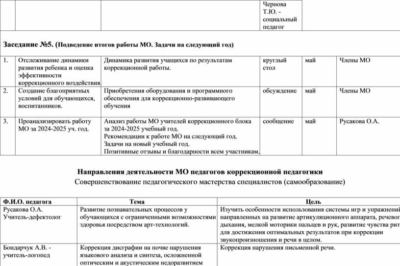 Анализ работы МО учителей коррекционного блока за 2024-2025 учебный год. Рекомендации к работе МО на следующий год. Задачи на новый учебный год. Позитивные отзывы и благодарности всем участникам. |