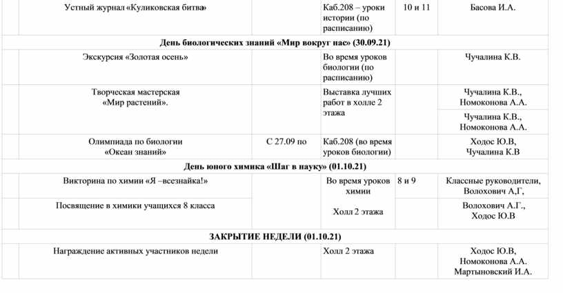 День биологических знаний «Мир вокруг нас» (30.09.21) |