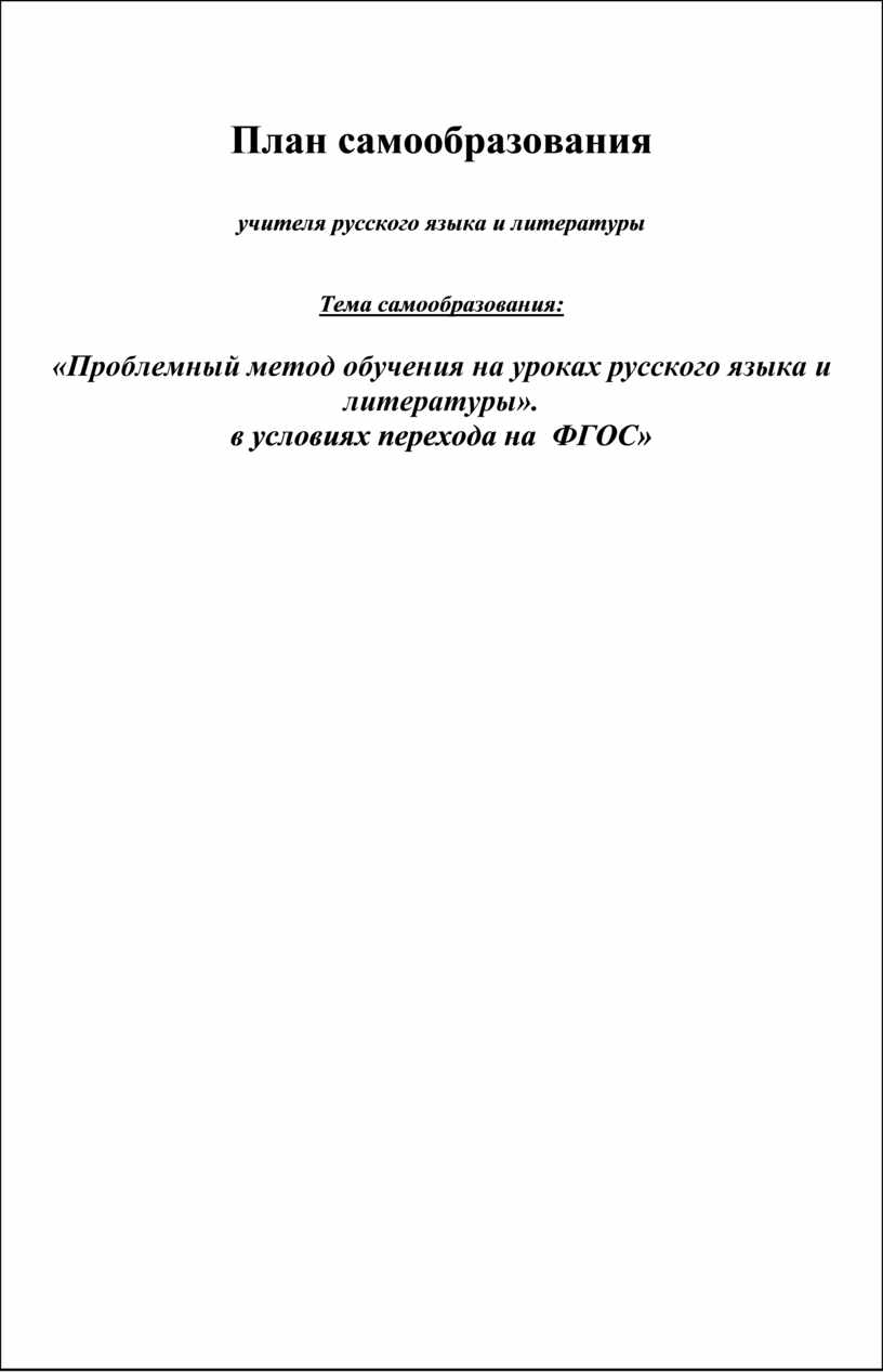 Тема самообразования: «Проблемный метод обучения на уроках русского языка и литературы».в условиях перехода на ФГОС»