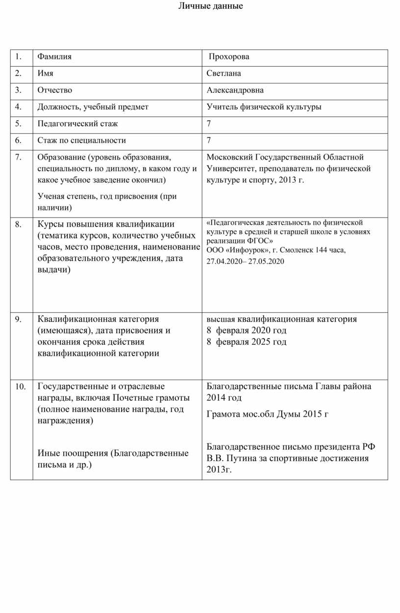 «Педагогическая деятельность по физической культуре в средней и старшей школе в условиях реализации ФГОС» ООО «Инфоурок», г. Смоленск 144 часа, 27.04.2020– 27.05.2020 |