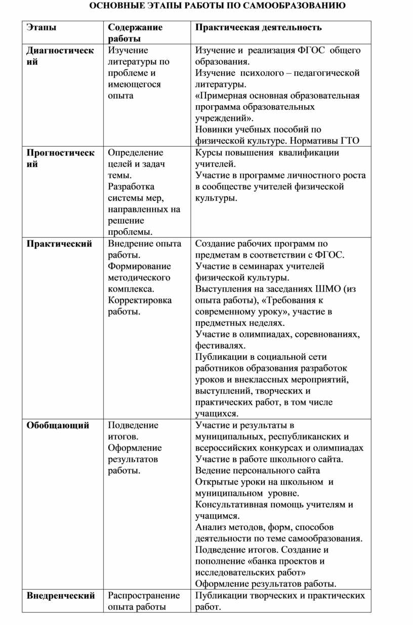 ОСНОВНЫЕ ЭТАПЫ РАБОТЫ ПО САМООБРАЗОВАНИЮ