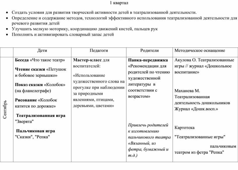 — создать условия для развития речи детей через творческую активность в театрализованной деятельности.