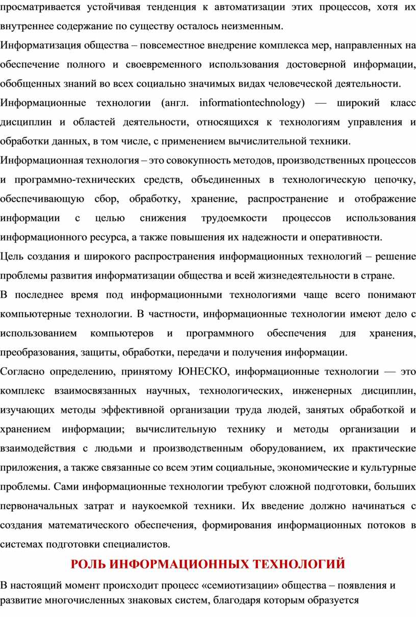 Информатизация общества – повсеместное внедрение комплекса мер, направленных на обеспечение полного и своевременного использования достоверной информации, обобщенных знаний во всех социально значимых видах человеческой деятельности.