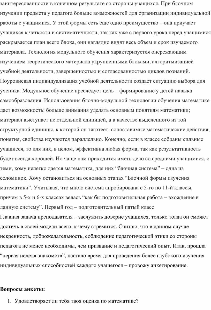 Основным принципом работы с детьми я считаю – сотрудничество, взаимоуважение. Целью моей воспитательной системы является формирование гармонично развитой личности. Значит от меня в данных условиях требуется построить педагогический процесс в соответствии с потребностями и целями современного общества. Классы, в которых я являюсь (являлась) классным руководителем, всегда занимали лидирующее положение по воспитанности, показывали хорошие результаты в учёбе, поскольку следуя личностно-ориентированному подходу в воспитании, я большое внимание уделяю развитию толерантных взаимоотношений. В процессе педагогической деятельности стараюсь создать обстановку комфортности, безопасности для ребёнка, атмосферы уважительного отношения друг к другу, как на уроке, так и во внеурочное время.