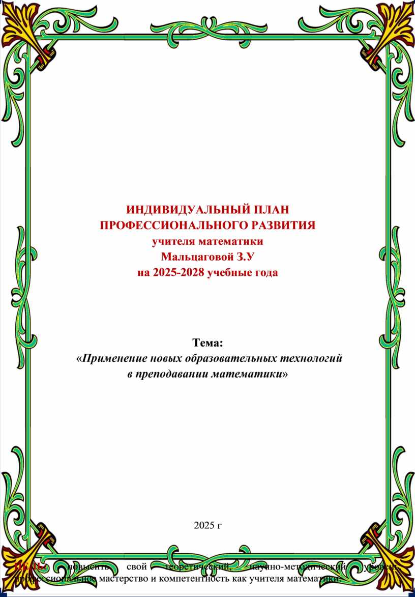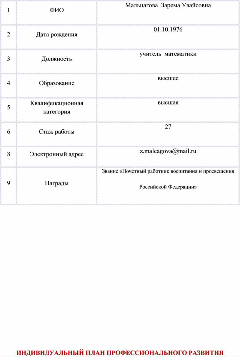 ИНДИВИДУАЛЬНЫЙ ПЛАН ПРОФЕССИОНАЛЬНОГО РАЗВИТИЯ