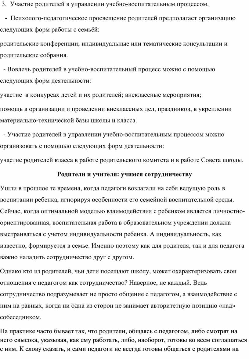 3. Участие родителей в управлении учебно-воспитательным процессом.