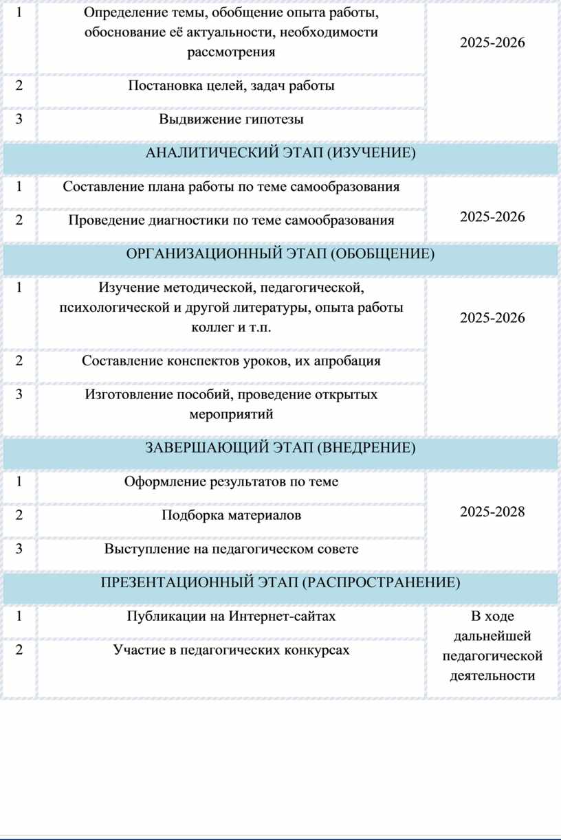 ☀ обобщить опыт педагогической работы по теме самообразования.